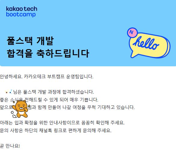 프로젝트 경험을 통해 지식은 많이 쌓였다고 생각하지만, 여전히 개발 역량에서는 부족함을 느꼈다. 그래서 카카오라는 든든한 환경 속에서 역량을 많이 키우고 싶어 지원하게 되었다.